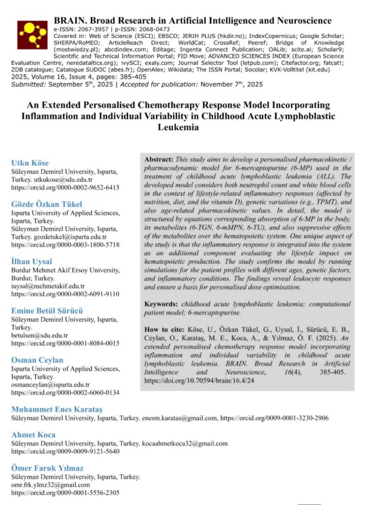 As part of the STING project, we developed an extended personalised chemotherapy response model, now published in the ESCI-indexed BRAIN – Broad Research in Artificial Intelligence and Neuroscience. 📄✨